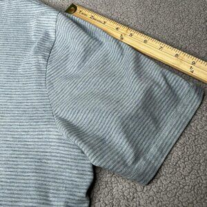 Color/Pattern: Blue and gray micro stripe, heathered knit
