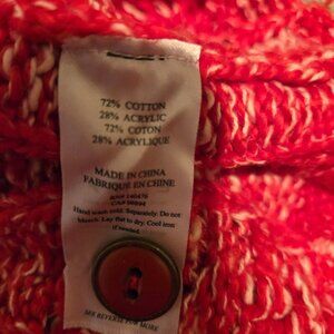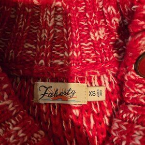 Faherty cable knit sweater. This is red and white with buttons on the shoulder. It is a size XS. Armpit to armpit measures 17 inches and shoulder to hem is 22.5 inches.