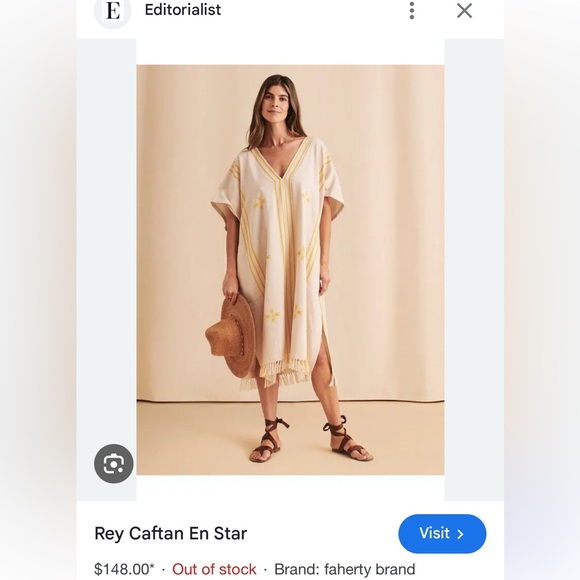 New with tags caftan from Faherty. Designed with Native American inspiration and heritage. A great dress or beach cover up!