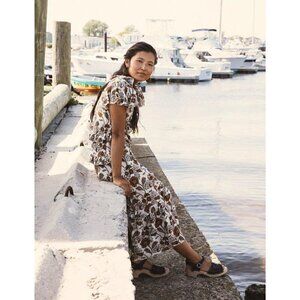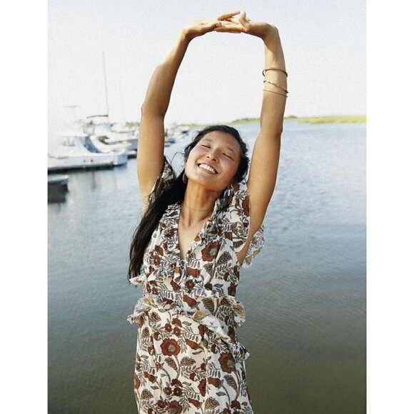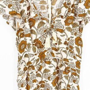 Faherty Ruffle Trim Tassel Tie V Neck Bonita Avignon Meadow Midi Dress small