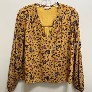 Faherty Sage Silk Cotton Top Blouse Leaf Floral Metallic Size S