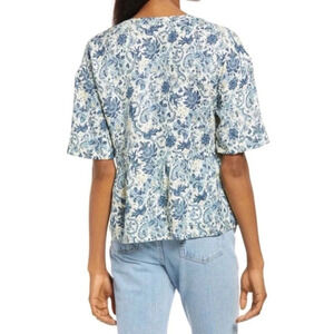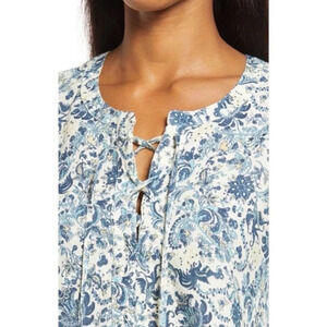 Faherty Salinas Floral Lace-up Linen Top blue 33764