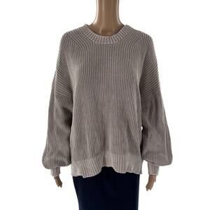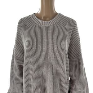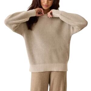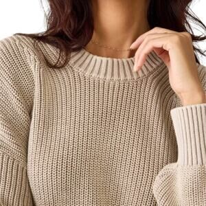 Knit in a chunky shaker stitch, this Faherty organic cotton fisherman sweater features a slouchy profile and a sun faded hue, making it ideal for chilly off duty days. Crewneck. Long sleeves. Dropped shoulders. Ribbed cuffs and hem. 100% organic cotton. Hand wash. WYS2501-DAL. In preowned condition.