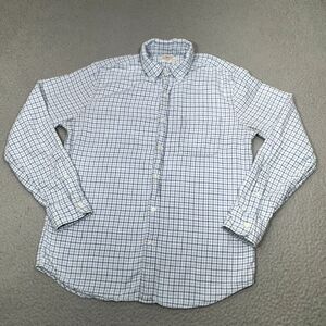 Faherty Shirt Men Medium Blue Linen Blend Check Plaid Button Casual Pocket Surf