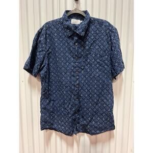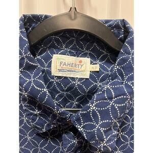 Faherty Shirt Mens XL Blue Short Sleeve Tropical Cotton Moolight Batik Blue