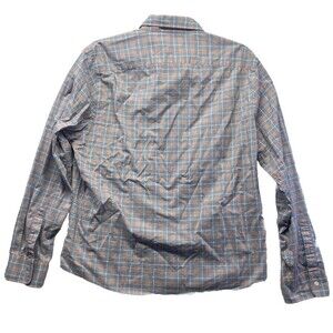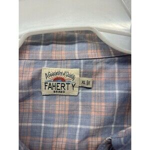This is a men's XL long sleeve button-up shirt from Faherty. It features a blue plaid pattern with a collared neckline and a button-down collar style. The shirt is designed for casual occasions and has a regular fit. Its pastel color and outdoor, classic, and preppy themes make it suitable for all seasons. The shirt is breathable and part of the Faherty product line, making it a stylish and versatile addition to your wardrobe.