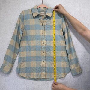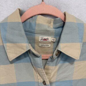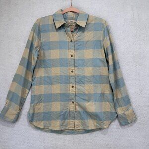 Faherty Shirt Womens Small Blue Tan Classic Flannel Organic Cotton WWF2101 Plaid