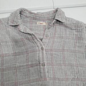 Faherty Shirt Womens XS Gray Red Stripe Short Sleeve Collared Popover Henley