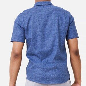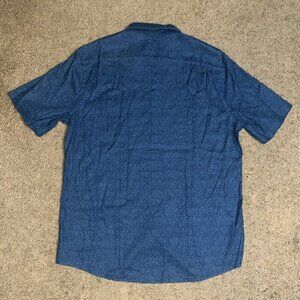 Faherty Short Sleeve Breeze Shirt Button Down Horizon Blues Frond Print Large. For fun-filled summer days, this shirt is crafted from a buttery soft custom fabrication made primarily from hemp. Lightweight with a bit of stretch, its unique hand feel also gives our signature prints an added natural texture leans into the coastal vibes. Relaxed body, with a straight fit from the chest to the hem, Straight sleeves. Button-down collar, Button front, Chest patch pockets, Double pleat back, Topstitch detailing, Shirttail hem. 53% Hemp, 44% Lyocell, 2% Spandex, Coconut Buttons. True to size. Regular fit; cut with a little extra room through the chest and body for comfort. Approx measurements: 22.5“ pit to pit & 30“ length. New condition. No stains/flaws. Smoke/pet free home. Offers welcome. Bundle & save. Ship same/next day. Packaged w/ care.