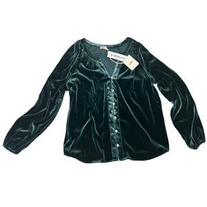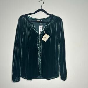 NWT! Faherty Silk Velvet Emerald Green V-Neck Blouse Stretch Naomi Sz M