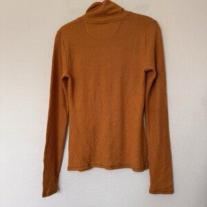 Faherty Size M Brown Ribbed Mock Neck Long Sleeve Stretchy Career Sweater