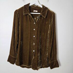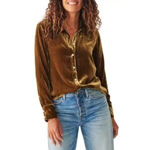 Faherty Size S Stretch Silk Blend Crushed Velvet Genevieve Button-Up Shirt