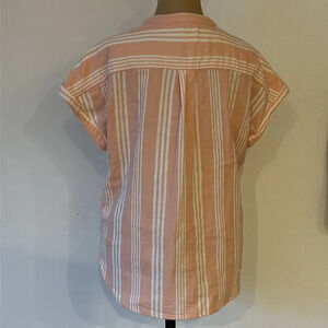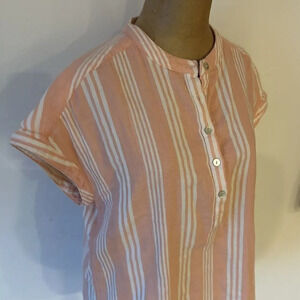 Faherty S peach white stripe organic cotton 1/2 button down blouse great cond