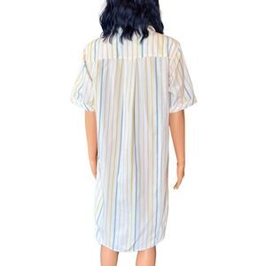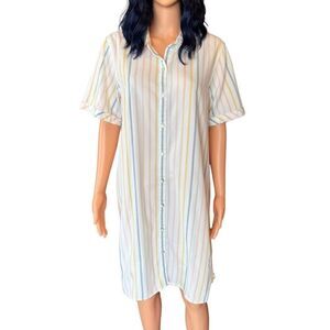 Faherty Striped Button Up Organic Cotton Linen Shirt Dress Size Large