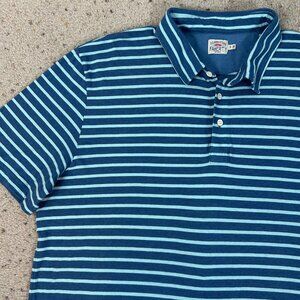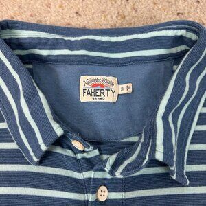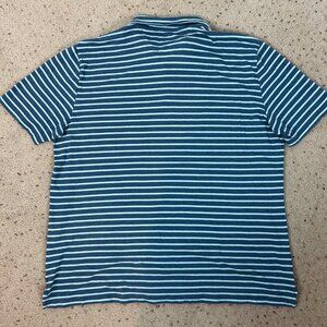 Faherty Striped Knit Short Sleeve Polo Shirt Blue Green Size XL Men's