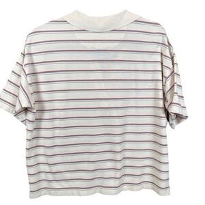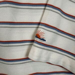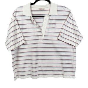 Faherty Sunwashed Pique Polo in Tennis Stripe Split Neck White Size Large. Excellent condition. See photos for details and unstretched measurements. Shop my closet and bundle multiple items for discounts and one shipping fee! the classic polo and updated it with signature Faherty feel-good vibes. First comes the fabric – a super soft cotton blend that's been garment washed for a perfectly lived-in look and feel. Then we cut it in a cropped, boxy silhouette with a retro-inspired open V-neck collar for that fresh, sporty look (even if you're just lounging by the pool.)