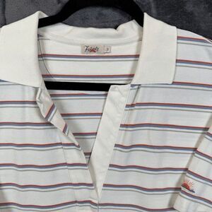 Faherty Sunwashed Pique Polo in Tennis Stripe Split Neck White Size Large