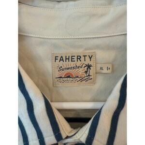 Faherty Sunwashed Polo Shirt Mens XL Ivory Breton Stripe Organic Cotton Relaxed