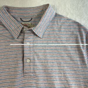 Faherty Sz L Large Polo Shirt Movement Stripe Pima Stretch Blue Pima Cotton Mens