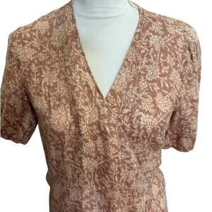 Faherty Tan Floral Faux Wrap Ashley 100% Linen Dress - XS