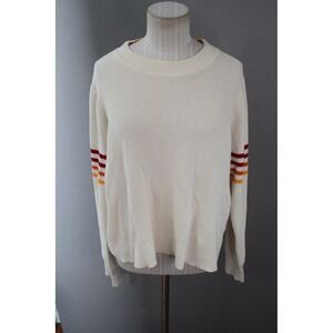 Keywords: Faherty sweater, Cream sweater, Knit sweater, Striped sleeve sweater, XL sweater, Women's sweater, Crew neck sweater, Cotton cashmere sweater, Casual sweater, Retro sweater, Long sleeve sweater, Relaxed fit sweater, Waffle knit sweater