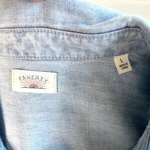 Faherty Tried & True Chambray Oakley Dress Arctic Sea Wash Women’s Size Large