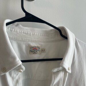 white collared shirt by Faherty. Features button-up design. Ideal for versatile styling.