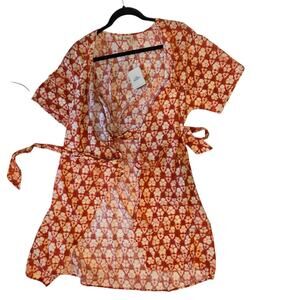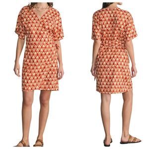 Faherty Willow Wrap Dress NWT Spiced Shibori Print sz small Linen Blend