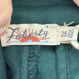 Faherty patch pocket pants classic ankle-length 5-pocket style. With all the support and recovery of your favorite denim and the stretch and comfort of a pair of loungewear, we've been perfecting these to be your go-to everyday pants. Polished or casual, the wide leg does it all with a truly versatile, authentic wash of color. Size 25. Measurements are approximate laying flat: rise 11” and inseam 25”