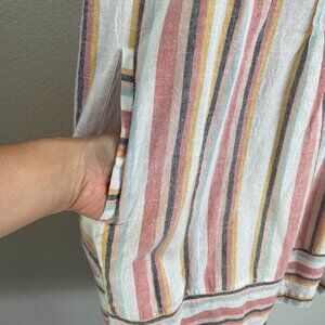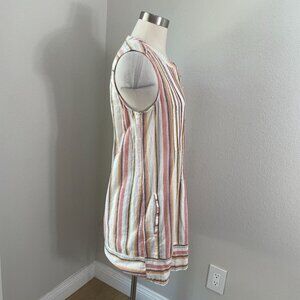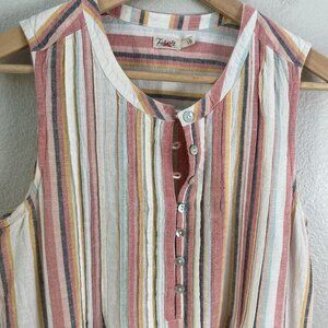 Faherty Womens Large Isha Pintuck Organic Cotton Dress Beach Stripe Sleeveless