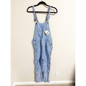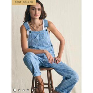 Faherty Womens Linen Mechanic Overalls In Railroad Stripe Blue White Small