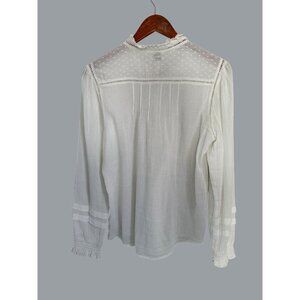 Faherty Womens Organic Cotton White Blouse M Ruffle Trim Button-Down Long Sleeve