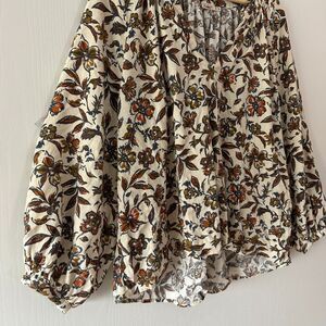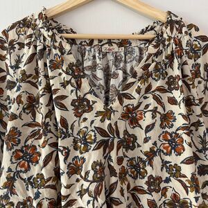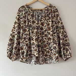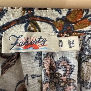 Faherty Womens Portia Top Linen Blend Indee Floral Cream Boho V Neck Blouse XL