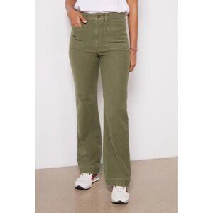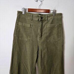 Faherty Women's Size 30 Wide Leg Stretch Terry Patch Pocket Pants Olive Green