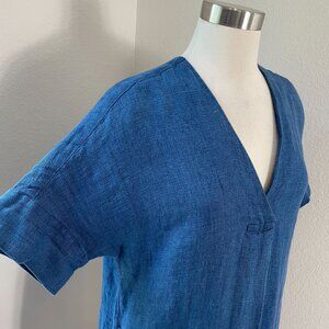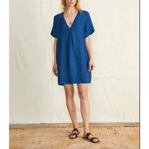 Faherty Womens XS Blue Sanibel Basketweave Dress Indigo 100% Linen Short Sleeve