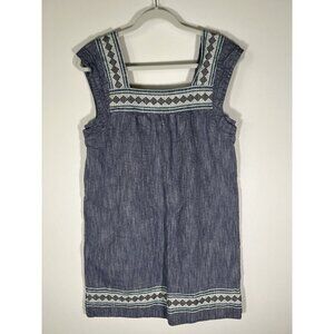 Faherty chambray sleeveless shift mini dress embroidered sz M boho preppy