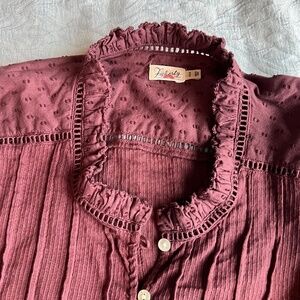 Faherty cotton, top burgundy in color size medium never worn remove tags, but have not worn.