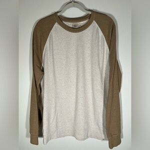 Faherty khaki white baseball-style colorblock sweatshirt outside fleece sz XL