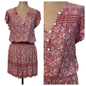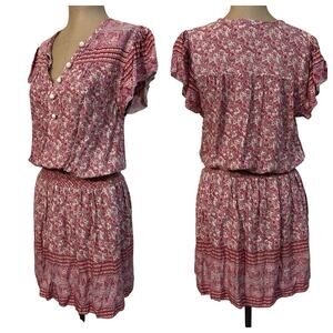 Faherty size Small Mini Dress Bemini Red Floral Print Rayon Smocked Waist A-Line