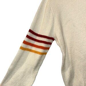 Faherty white waffle knit warm rainbow reds orages stripes trim sweater M