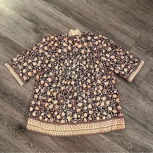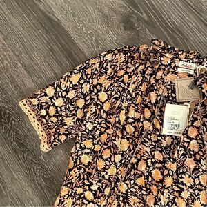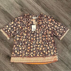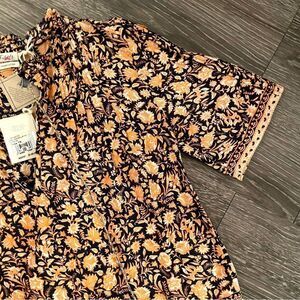 This light-as-air top features a vintage-inspired Indian artisan print. Made of an airy organic cotton voile, it’s got intricate details galore: delicate pintucks, a subtle ruffle, and twisted drawcords, to name a few. Short and swingy, slip it on over your favorite jeans or dress things up with a skirt.