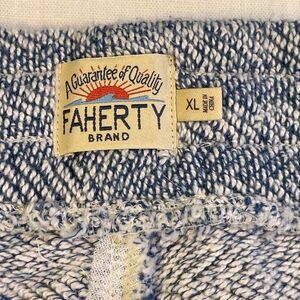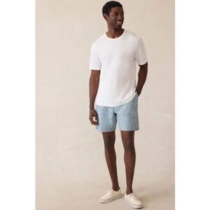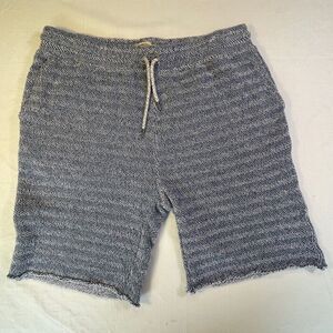 Faherty Blue Striped Knit Organic Cotton Drawstring Raw Hem Sweat Short Size XL