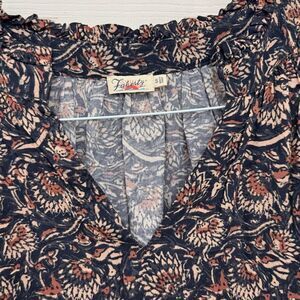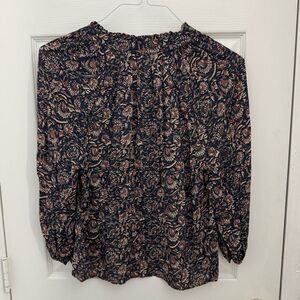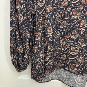 Faherty Brand Portia Top Size Small Block Print Long Sleeve V Neck Floral Blue