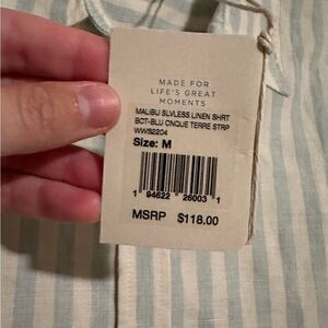 A classic striped linen button down sleeveless top. This is the perfect beachy top it just needs a good steam. NWT!