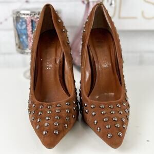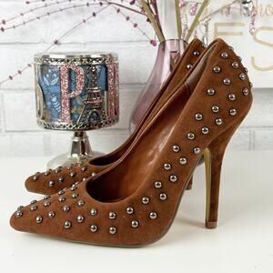 Fahrenheit Brown Faux Suede Studded Heels Size 6