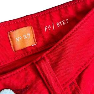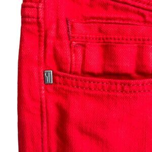 Keywords: red jeans, skinny jeans, Fahrenheit Stet, size 27, denim, casual, contemporary, stylish, classic, five pocket, red pants, womens jeans, stretch jeans, colored denim