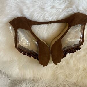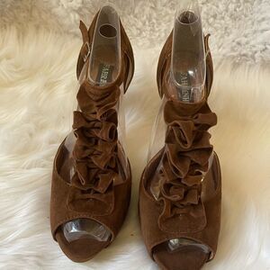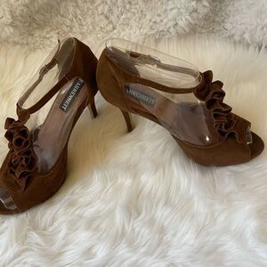 Fahrenheit brown faux suede ankle strap sandals peep toe size8.5