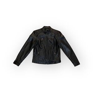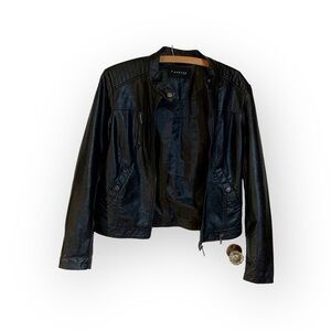 Fahsyee Black Faux Leather Cropped Moto Jacket L