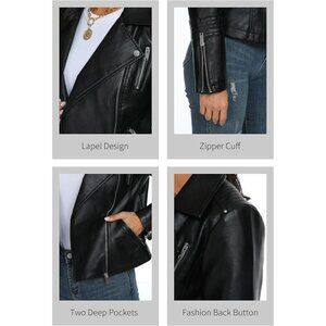 Fahsyee Faux Leather black Jacket for Women Vegan Jackets coat