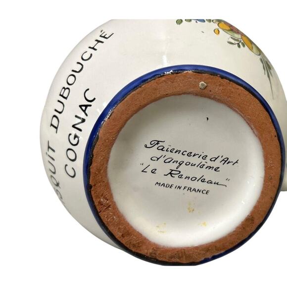 vintage French pitcher, faiencerie d'art angouleme, cognac jug, French country kitchen, rustic barware, ceramic collectible, made in France, cottagecore, provincial décor, vintage France, farmhouse kitchen, bar cart styling, Bisquit Cognac, French ceramic pitcher